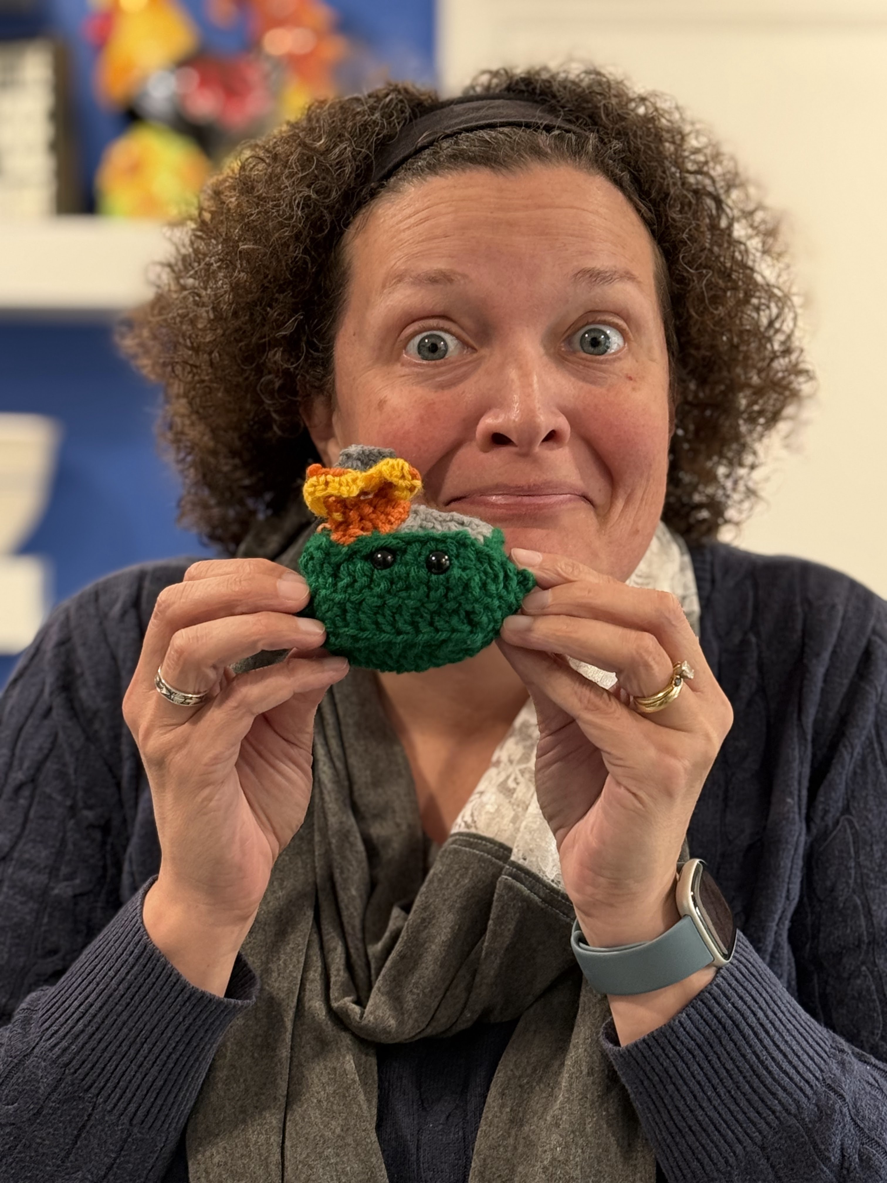 It started in November. A friend of mine and I were texting, sharing projects we were working on made out of yarn – she was crocheting and I was knitting. I then received a picture of a tiny crocheted dumpster fire. It was amazing. And when I told this friend I loved it, I soon after received one as a gift.